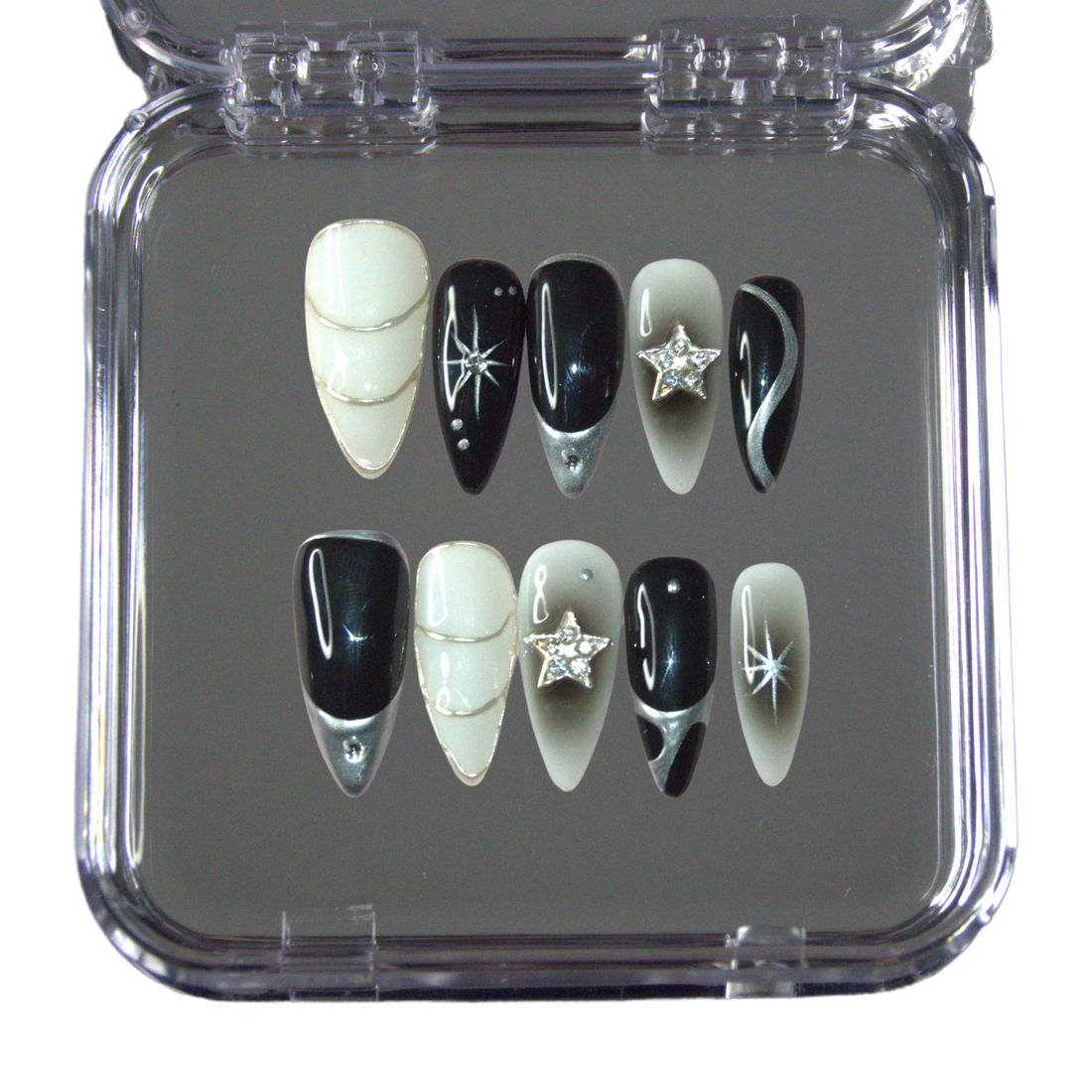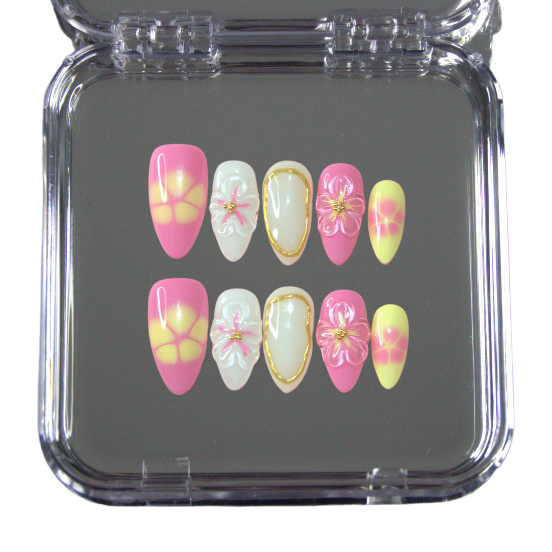 Les press-on nails sont des faux ongles réutilisables, à coller directement sur vos ongles naturels. Ils offrent un résultat digne d’un salon, sans abîmer l’ongle et avec une pose rapide (en quelques minutes seulement).