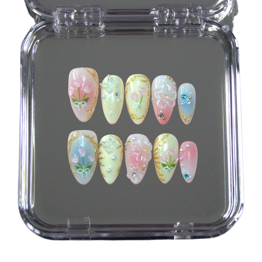 Les modèles faits main, comme chez Mimi, sont plus solides, plus épais et offrent des finitions uniques et travaillés. Les press-on industriels sont souvent plus fragiles et moins détaillés. Pour les reconnaitre, les press-on nails faits machine ont souvent un bout de plastique à l'extrémité de l'ongle qu'il faut limer.