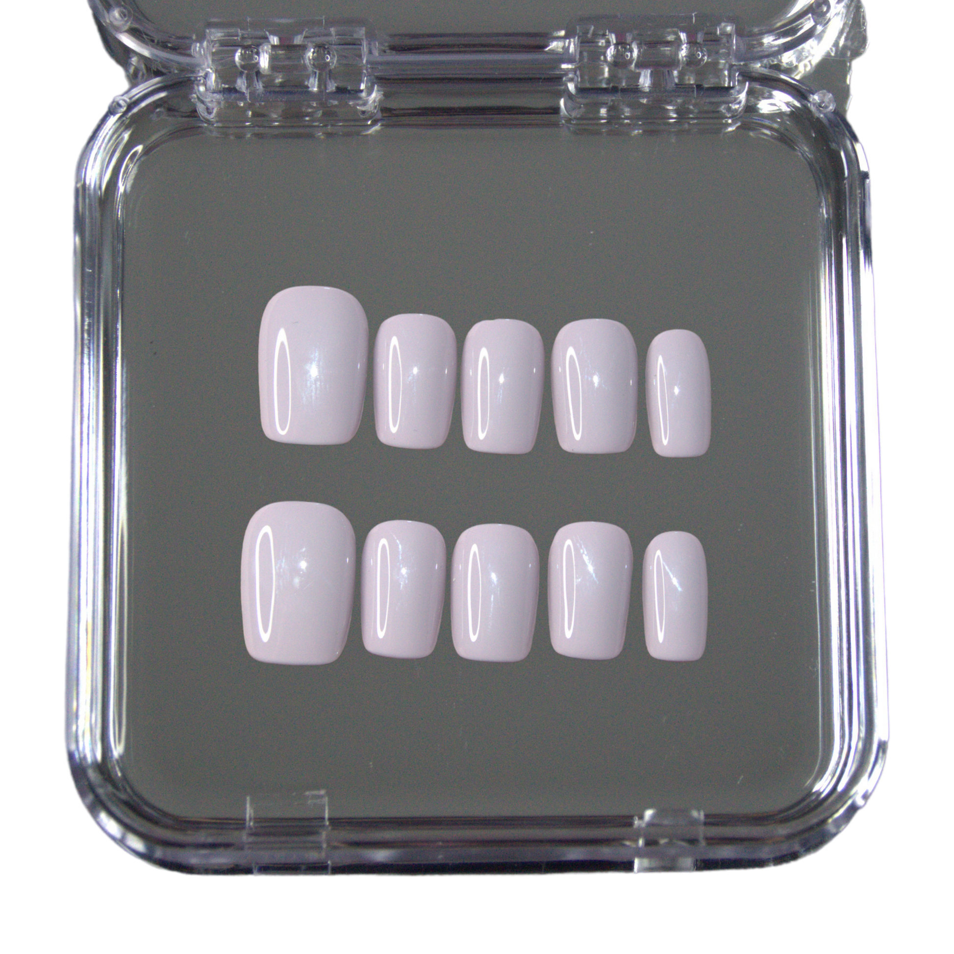 Handmade press-on false nails in delicate light pink with a smooth, glossy finish. A soft, timeless shade, perfect for a natural, sophisticated look.