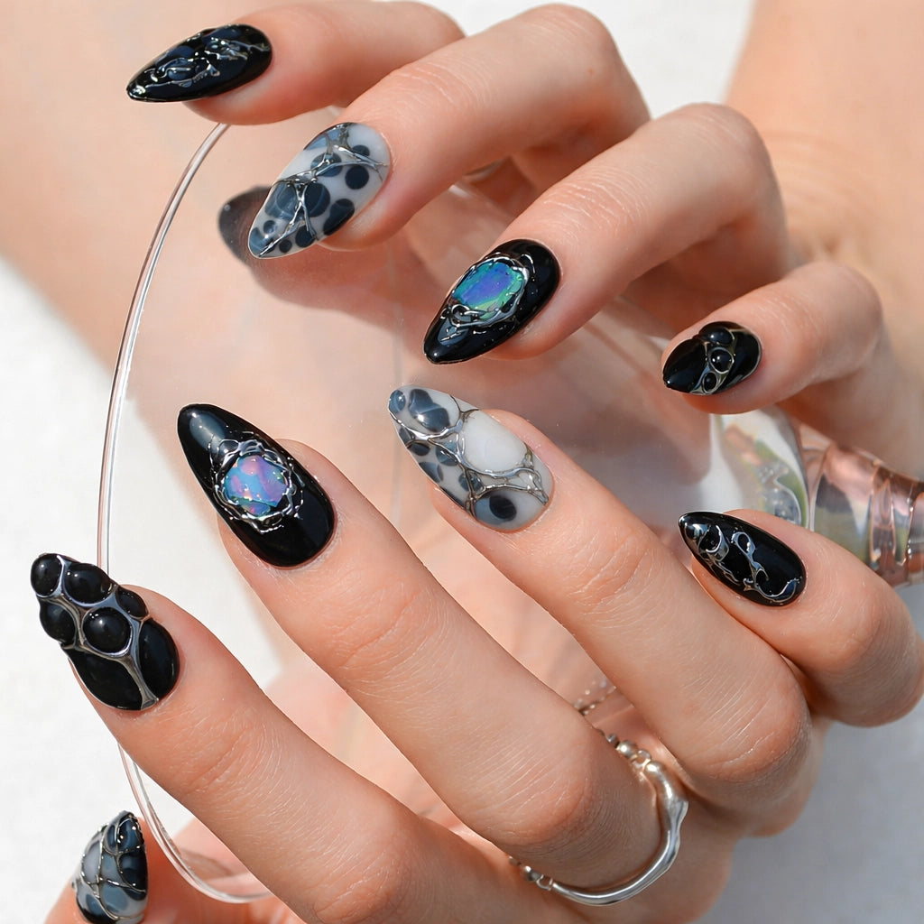 Le set Eclipse Mood combine des détails 3D effet chromé noir et blanc.