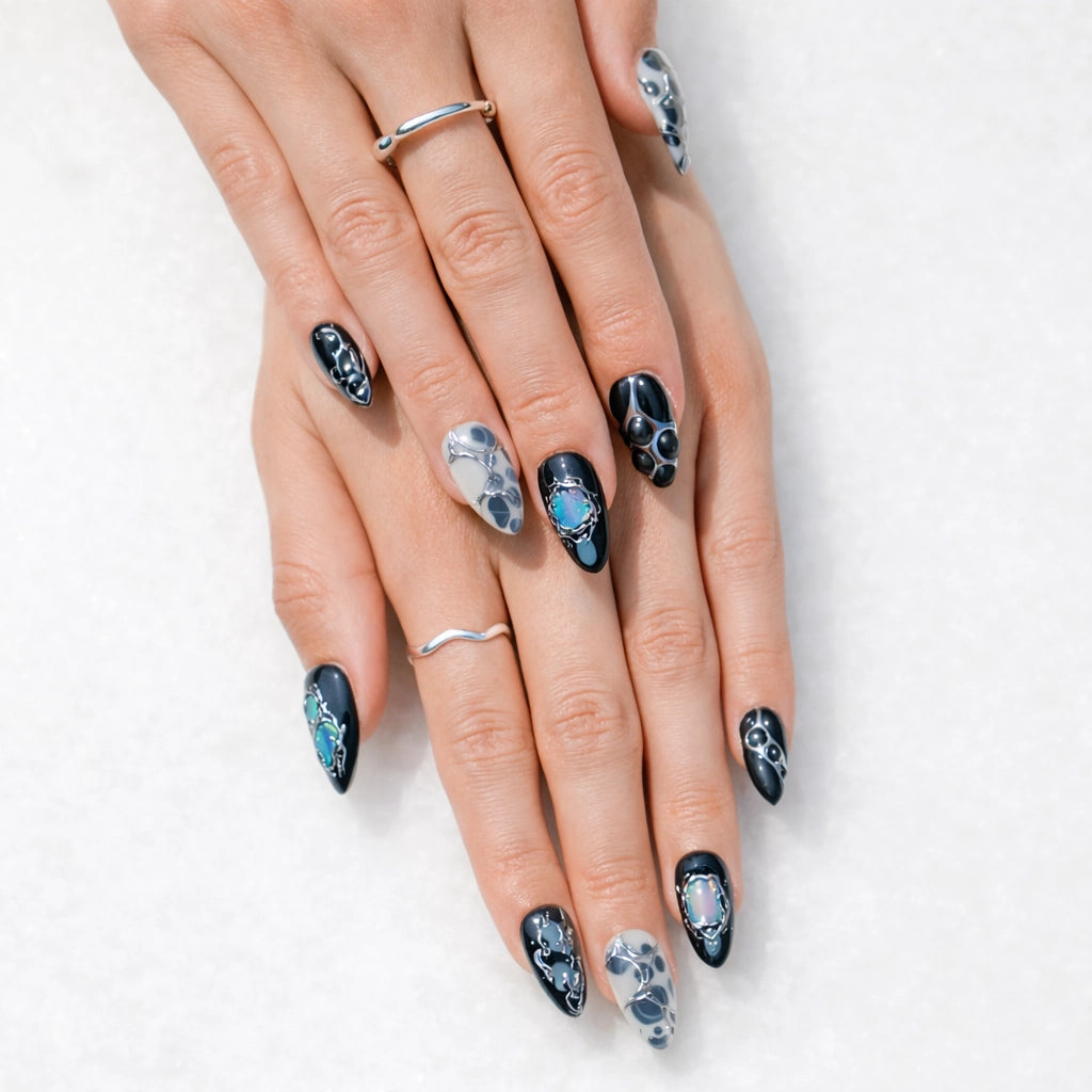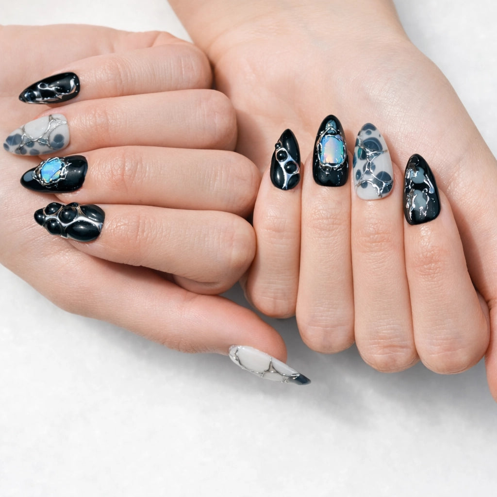 Nos faux ongles sont fabriqués à la main sur une base en acrylique avec du gel et vernis professionnel. Ces press-on nails haut de gamme offrent un résultat digne d'un salon de beauté en moins de 10 minutes et sont réutilisables plusieurs fois.