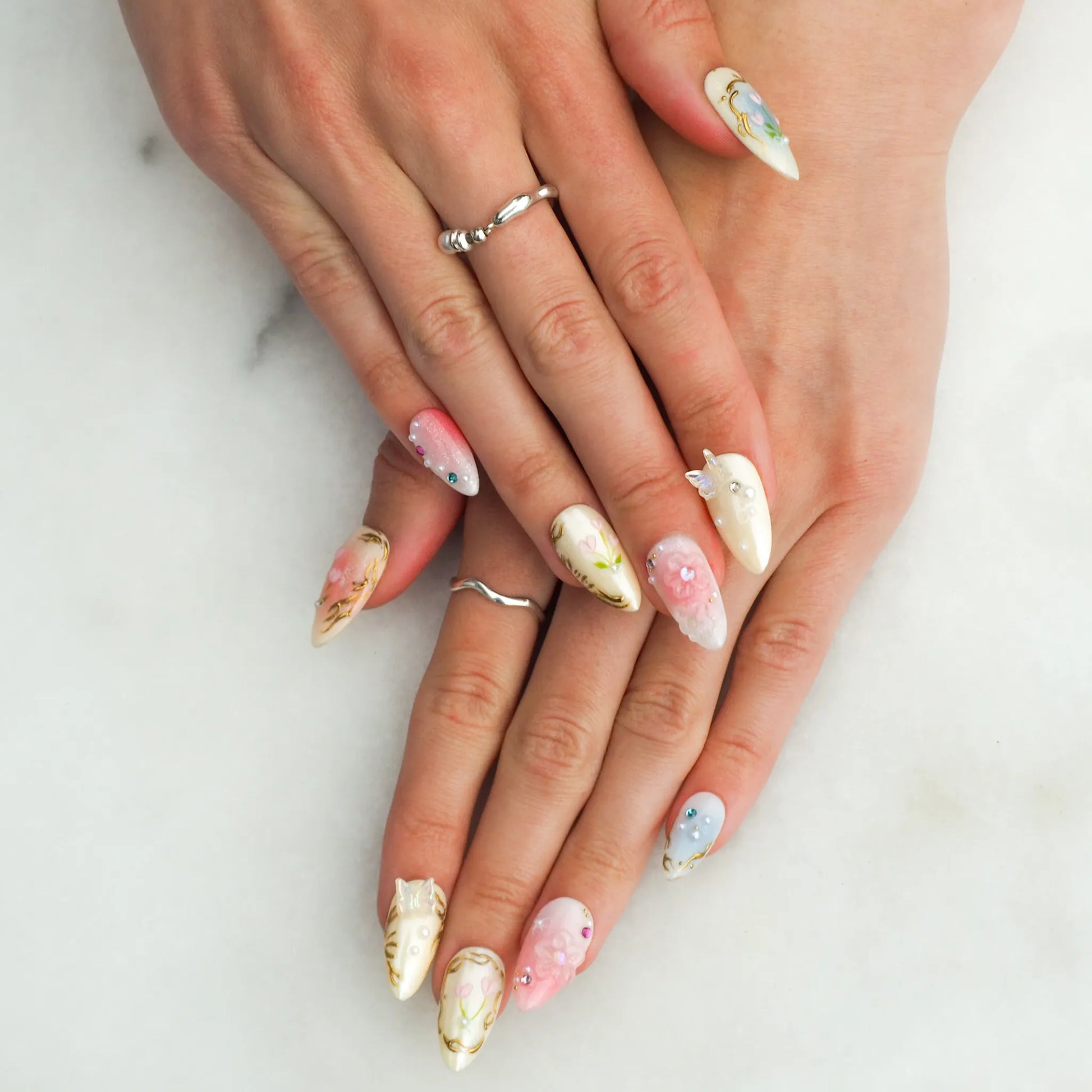 Chaque set est réalisé à la main par des nails artistes, avec des gels professionnels de qualité salon. Résultat : des finitions soignées, solides et uniques.